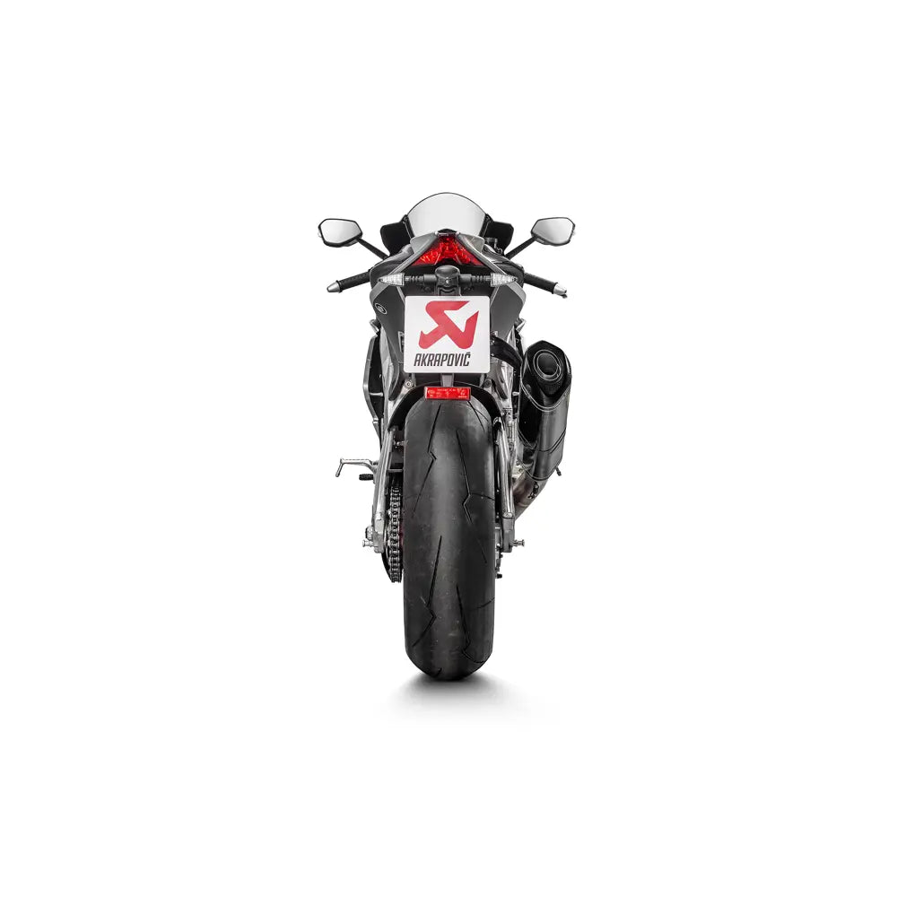 Unleash the full potential of your Aprilia with the Akrapovic Evolution Line exhaust. Designed for riders who demand top performance, this titanium exhaust is significantly lighter than stock, delivering increased power, optimized handling, and an unmistakable racing sound. Crafted with precision, it features a seamless blend of materials like titanium and carbon fiber for ultimate durability and performance.