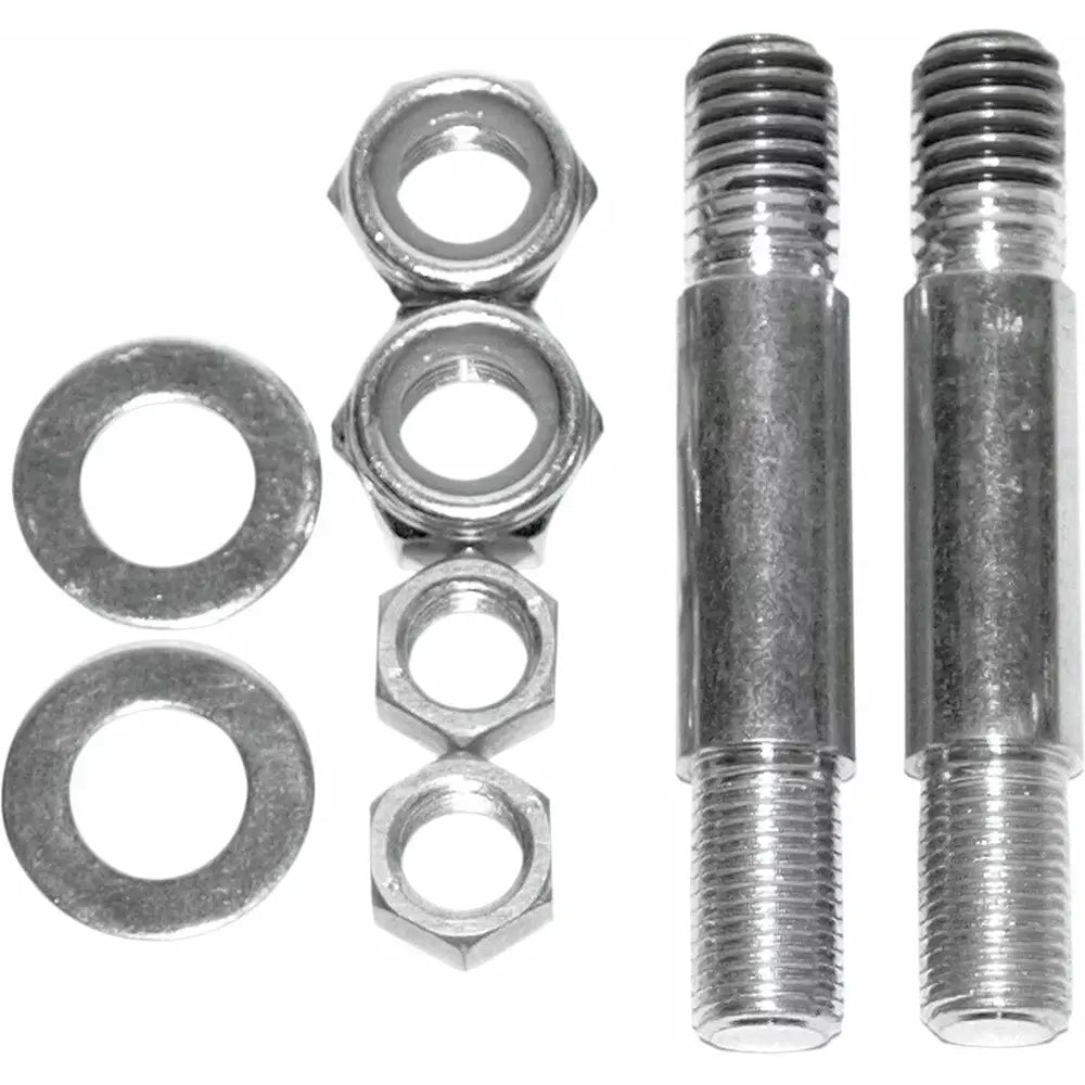 Riser stud adapters. Allows installation of 1/2"-13 threaded Harley Davidson style risers to most metric threaded triple trees / yokes of European or Japanese motorcycles.