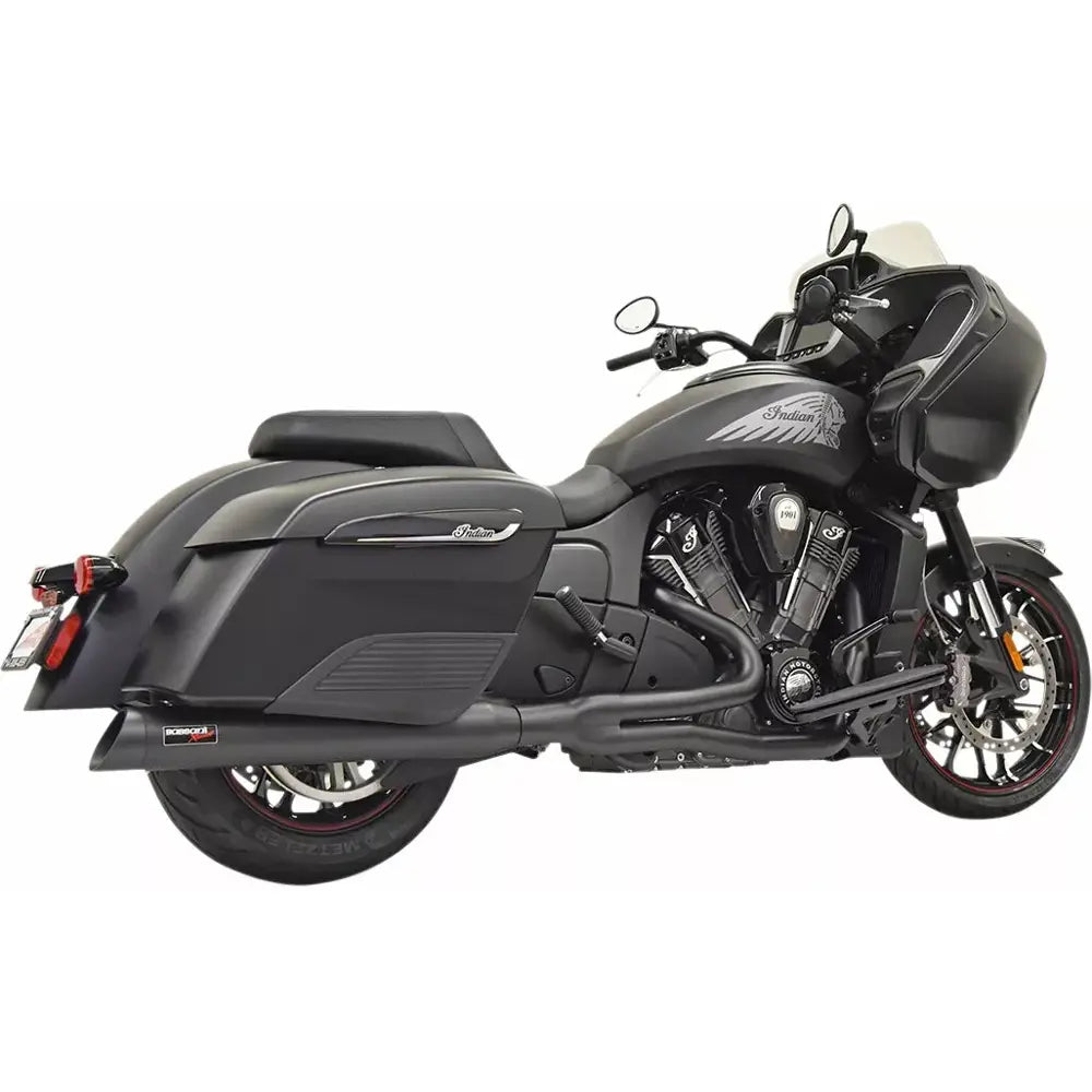 The Bassani Road Rage 2-into-1 system for Indian comes with stepped headpipes and a megaphone muffler in black. The perfect exhaust for the rider that wants Power and sound.