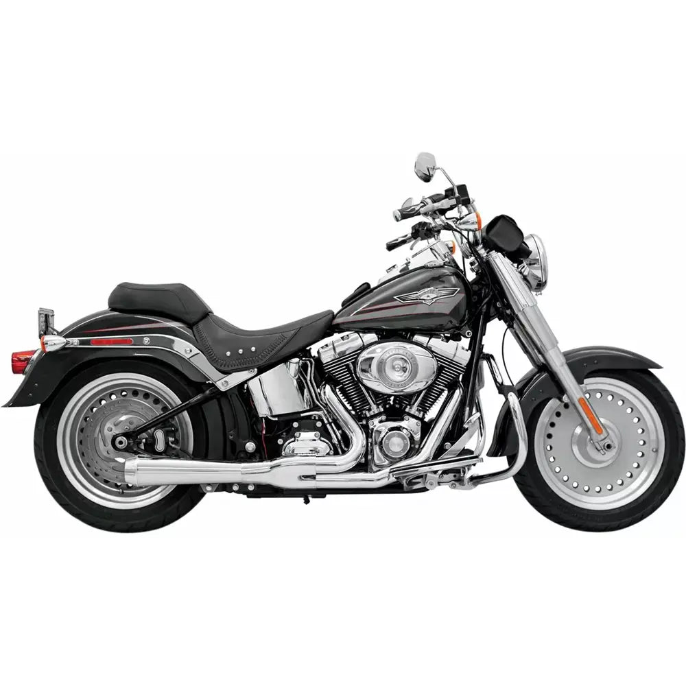 The Bassani Road Rage 2-into-1 system for Harley comes with stepped headpipes, chrome or black finish and a removable spiral core baffle.