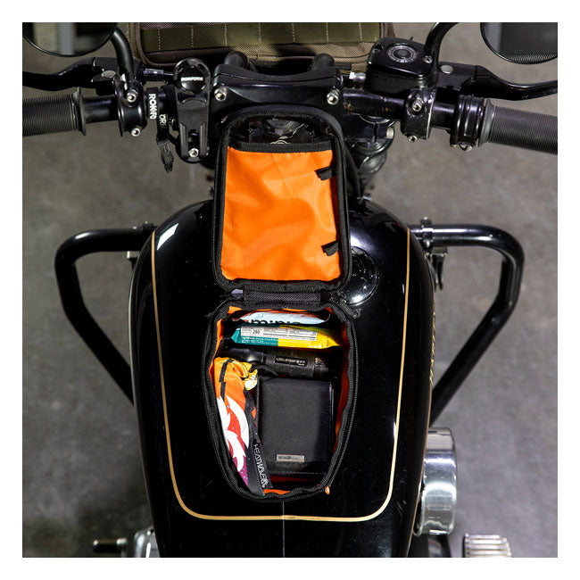 The EXFIL-2 mini tank bag is a compact storage solution designed for everyday riding. Small enough to stay out of the way but roomy enough to hold the essentials, it attaches instantly to any steel tank using three strong internal magnets, no straps required.