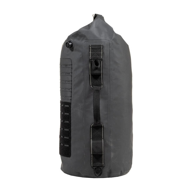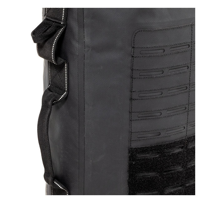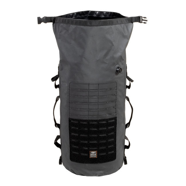 The EXFIL-65 2.0 waterproof bag is one of the most versatile pieces in the EXFIL line, designed to handle any adventure while keeping your gear completely protected. Built from PVC-coated tarpaulin with a reinforced bottom, it’s 100% waterproof and dustproof. The roll-top closure and “FVT” (Fart Valve Technology) allow air to escape for maximum compression, while eleven rows of laser-cut MOLLE and multiple tie-down points offer flexible mounting and gear expansion. Whether strapped vertically to a sissy bar or laid across a rack, it’s the perfect size for camping gear, clothing, or road essentials.