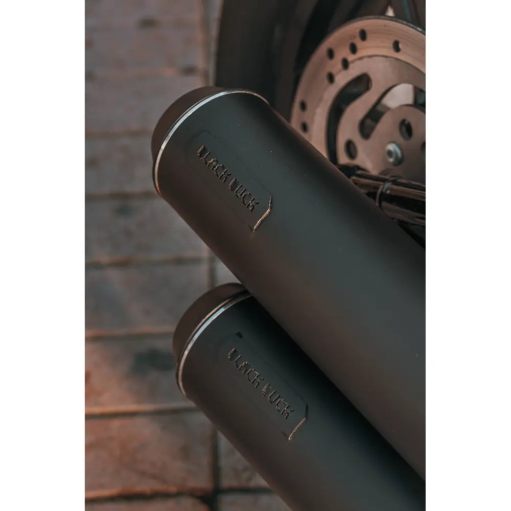 Black Duck Bombardier EC Euro Approved Slip-On Mufflers for Harley Davidson