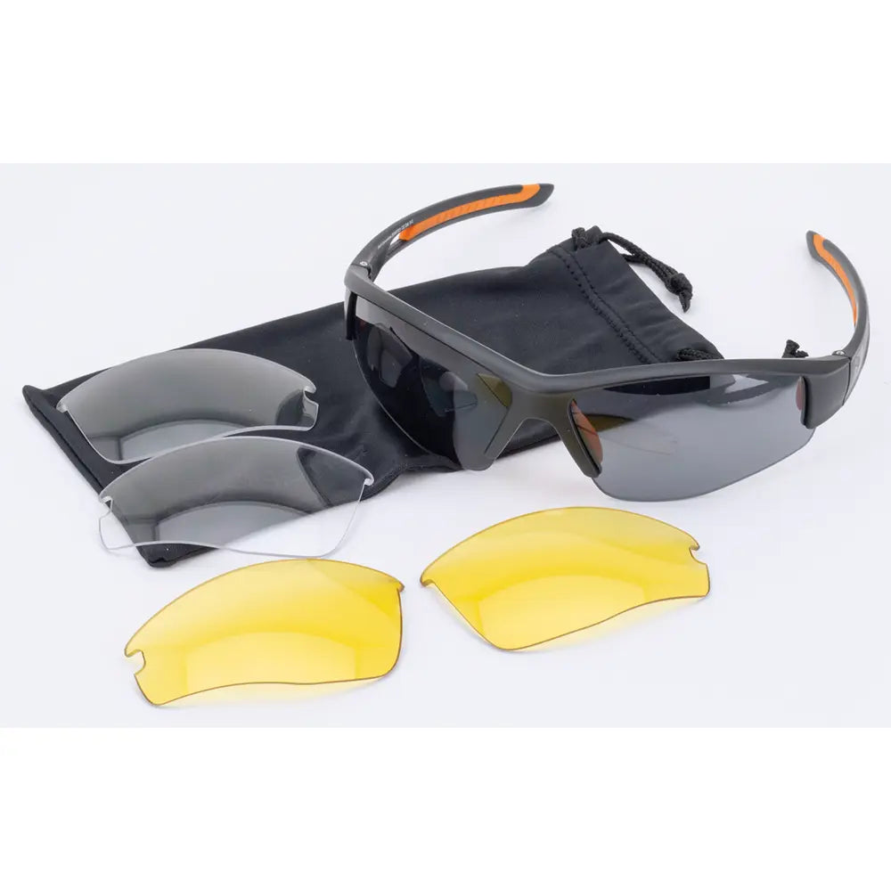 - 3 interchangeable anti-fog lenses: Smoked, Yellow, and Clear
