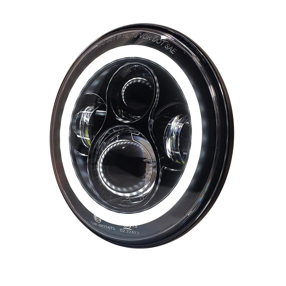 The Beam Halo 7" LED headlamp unit from Swedish Motorcycle Parts is an exceptional upgrade for motorcycle enthusiasts seeking enhanced lighting performance. This ECE-approved headlamp is distinguished by its unique feature of a switchable white/amber colored halo-ring/position light, adding both great visibility and modern looks.