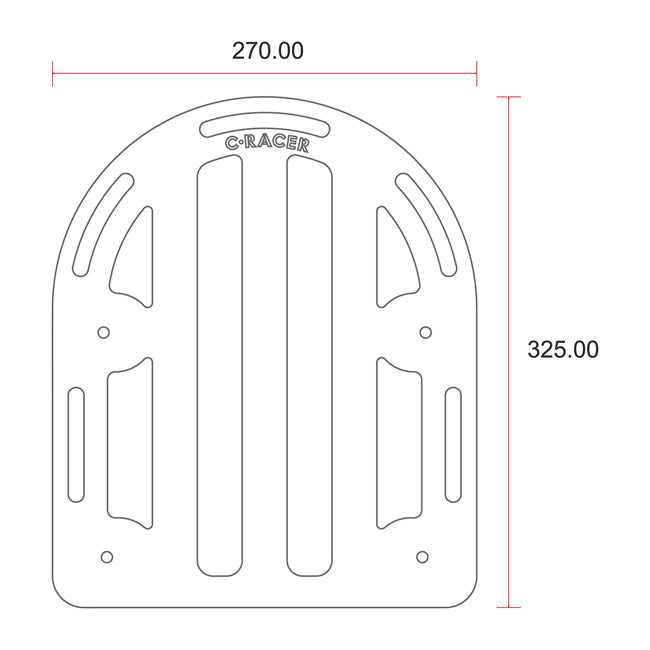 The C-Racer luggage rack No1 is a brushed aluminum rack with four mounting points, designed for custom applications. It comes with black powder-coated steel brackets. With a maximum load capacity of 5 kg, it’s ideal for carrying small bags or gear.