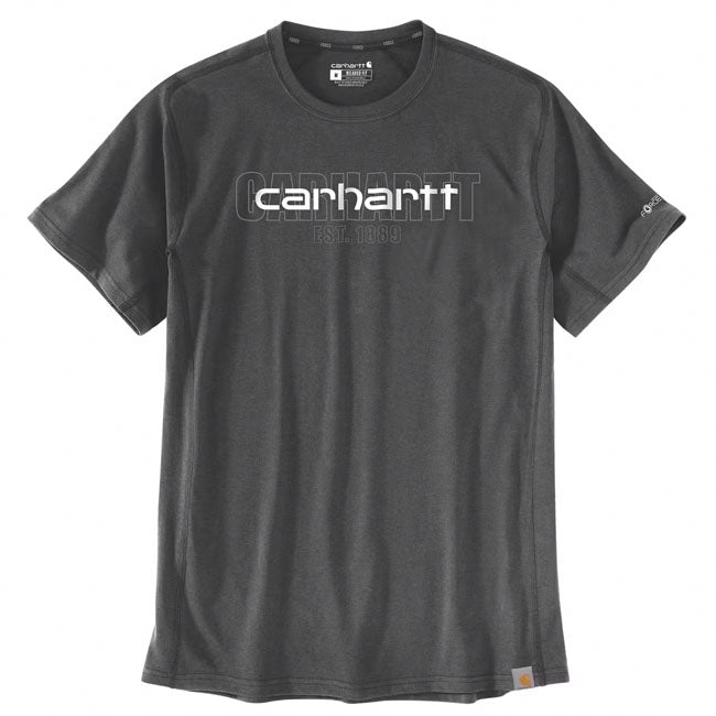 Performance-focused with a clean Carhartt look. This t-shirt features mesh panels, FastDry™ tech, and a graphic logo print up front and on the sleeve.