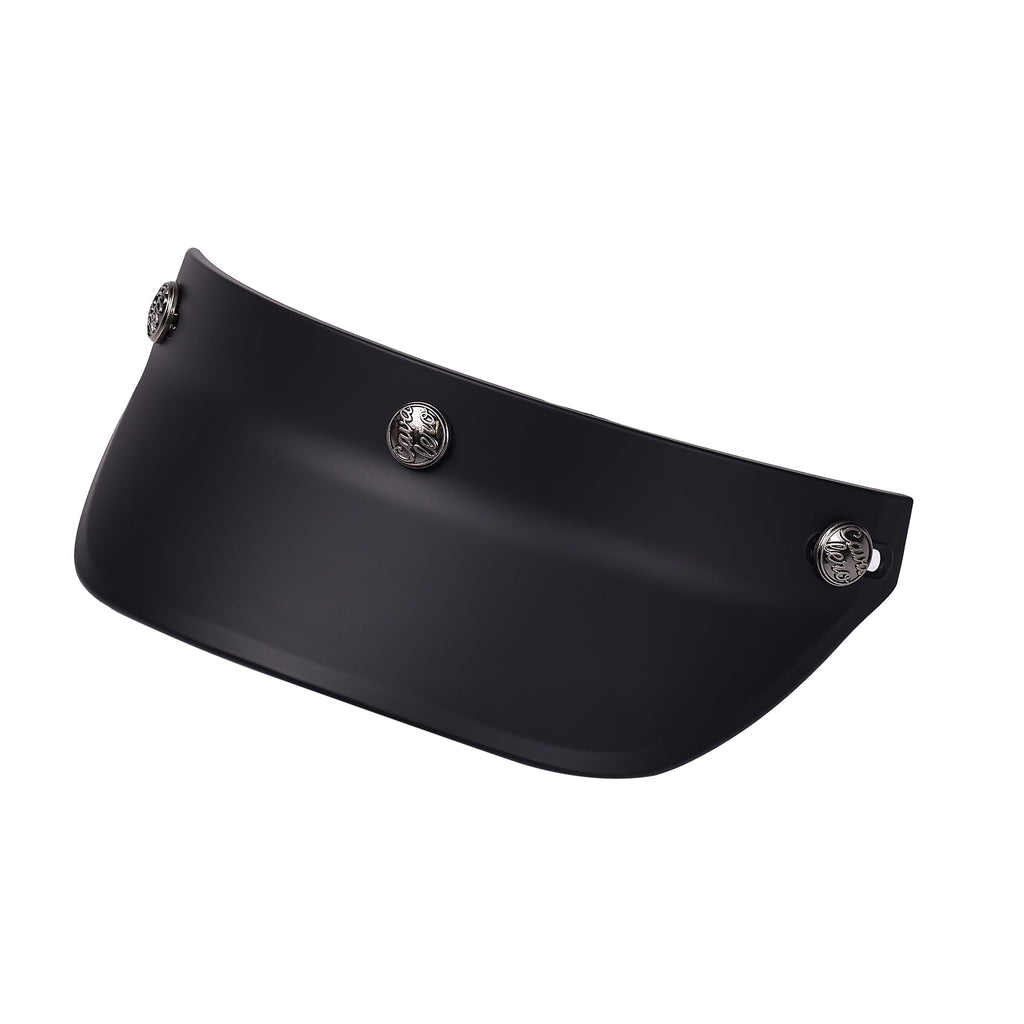 This helmet peak gives an open face helmet a proper old-school look while keeping the sun out of your eyes on bright rides. It’s made from tough polycarbonate and snaps on in seconds, so you can swap it on or off without messing around. Simple piece, but it changes the whole feel of the helmet.