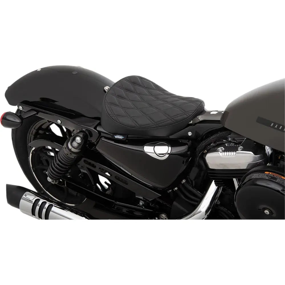 The Drag Specialties Bobber Solo seat gives your Sportster that classic spring seat look with the strength of a rigid mount. Sitting lower than stock, it improves your riding position while keeping a clean, stripped down style that fits the lines of the bike perfectly.