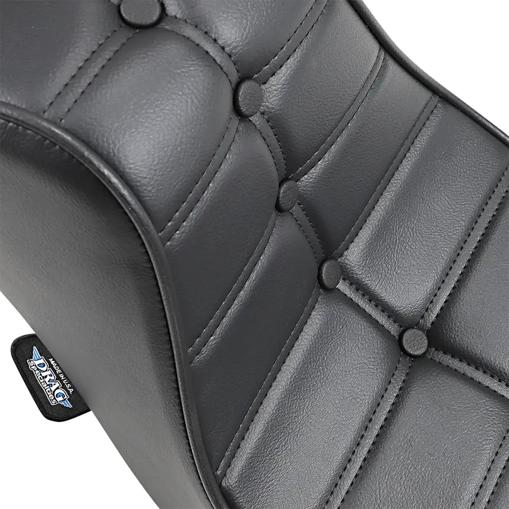 The Drag Specialties Mini King and Queen seat brings classic retro style back to your Harley with modern comfort. With detailed Scorpion stitching, a tall-backed look, and a slim profile, it’s the perfect mix of old-school design and everyday rideability.