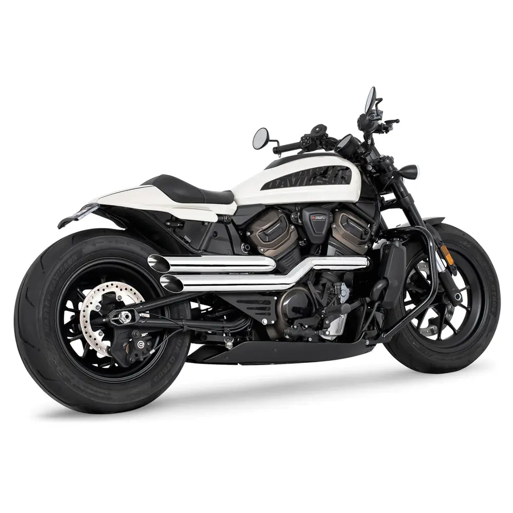 Unleash that deep hot rod rumble with the Freedom Performance Amendment Side Slash exhaust for Harley. This system boosts torque and horsepower while maintaining the classic 2-into-2 styling.