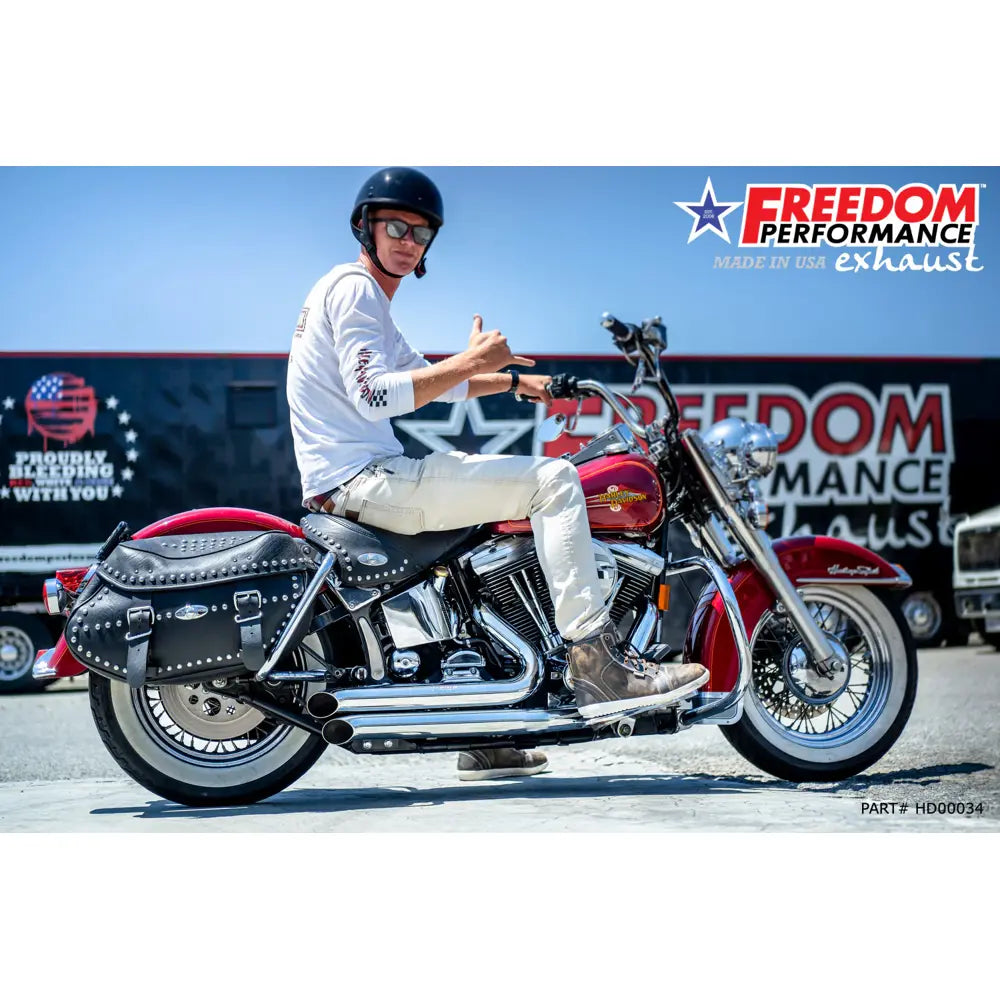 Unleash that deep hot rod rumble with the Freedom Performance Declaration Turn Outs exhaust for Harley. This system boosts torque and horsepower while maintaining the classic 2-into-2 styling.
