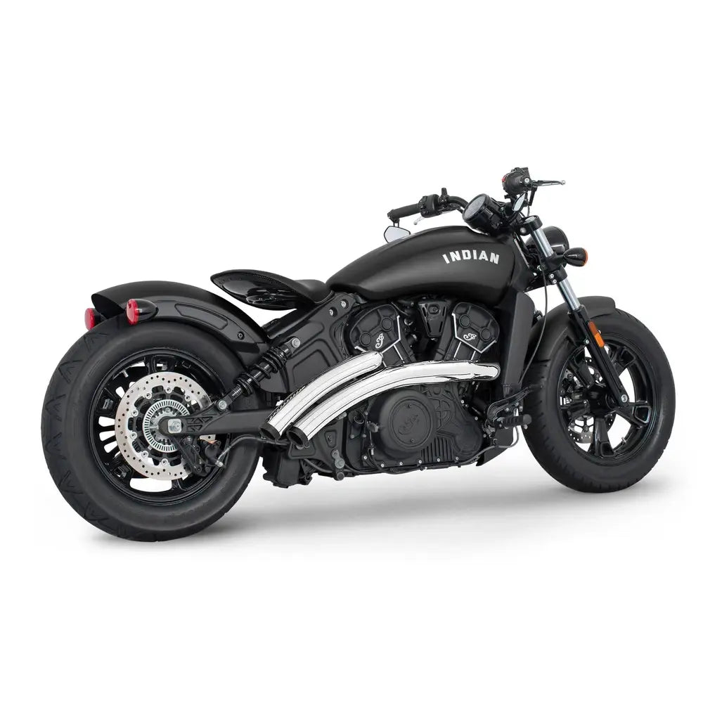 Let your Indian motorcycle growl with the Freedom Performance Radical Radius exhaust system. Radical Radius exhausts feature one piece 2 1/2" (64mm) outer diameter 16 gauge heavy duty heat shields that cover the headers for a full 220 degrees as well as a three-step header system for optimal horsepower and torque.