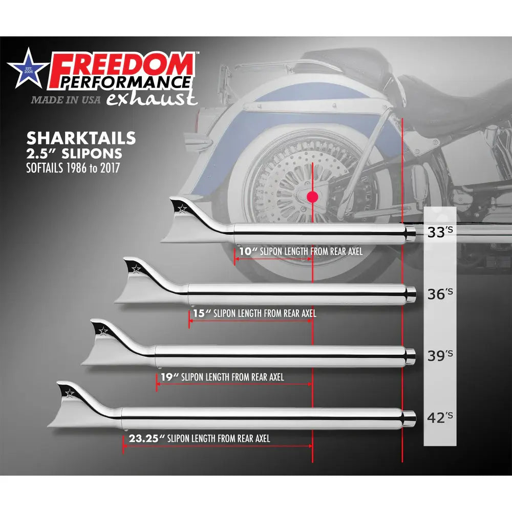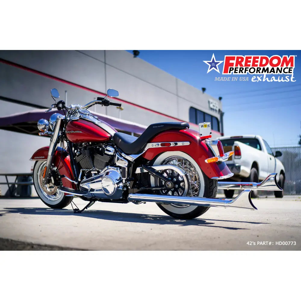 Unleash that deep hot rod rumble with the Freedom Performance Sharktail True Dual exhaust for Harley. This system boosts torque and horsepower with unbeatable classic looks. Similar to the classic Fishtail-style exhausts.