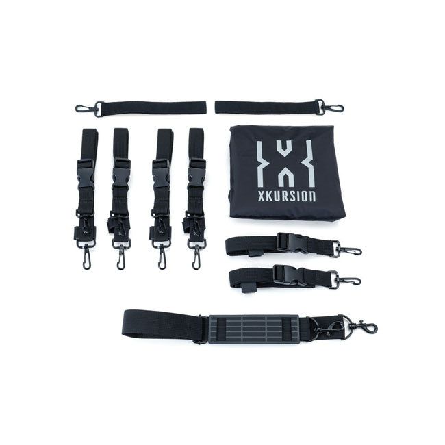 The XKursion XB Fast Lane saddlebags combine modern style with the convenience of throw-over mounting, no bulky hardware or brackets required. The adjustable seat strap ensures a great fit on most motorcycles, mounting either above or below the passenger seat. These bags offer expandable storage, integrated organization, and rain covers for full waterproofing. With clamshell openings, MOLLE attachment points, and room to fit a full-face helmet.