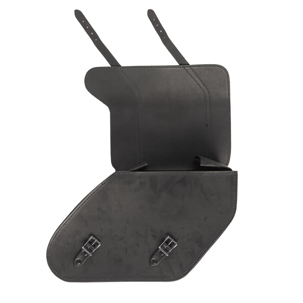 This saddlebag set from Ledrie offers great storage capacity and is built for strength and durability. Made from premium 2.8 mm thick genuine leather, each bag features a 4 mm thick HDPE back panel sewn in for excellent shape retention and mounting strength. These saddlebags are hand-made to maintain consistent high quality. Universally mountable to most motorcycles.