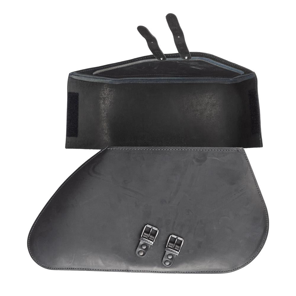 This saddlebag set from Ledrie offers great storage capacity and is built for strength and durability. Made from premium 2.8 mm thick genuine leather, each bag features a 4 mm thick HDPE back panel sewn in for excellent shape retention and mounting strength. These saddlebags are hand-made to maintain consistent high quality. Universally mountable to most motorcycles.