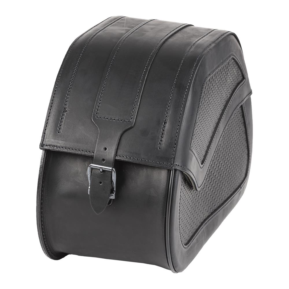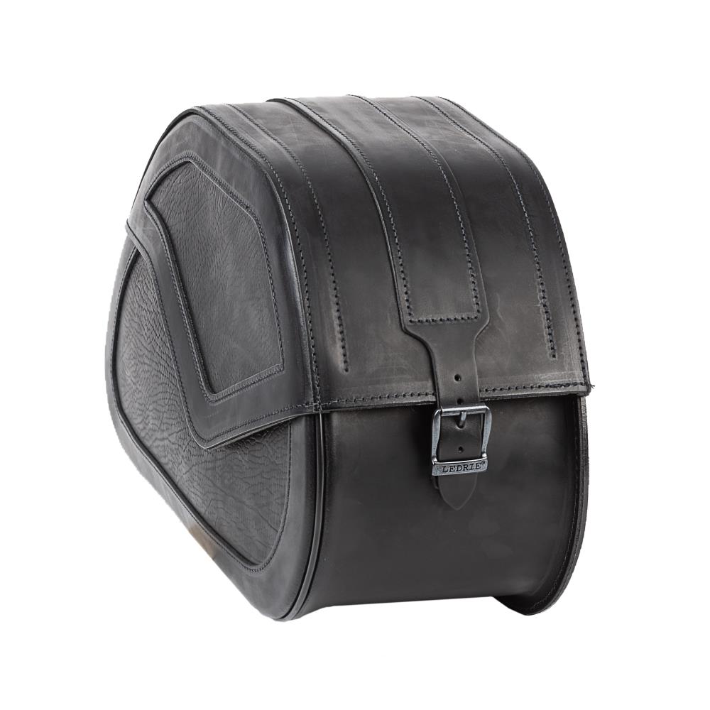This saddlebag set from Ledrie offers great storage capacity and is built for strength and durability. Made from premium 2.8 mm thick genuine leather, each bag features a 4 mm thick HDPE back panel sewn in for excellent shape retention and mounting strength. These saddlebags are hand-made to maintain consistent high quality. Universally mountable to most motorcycles.