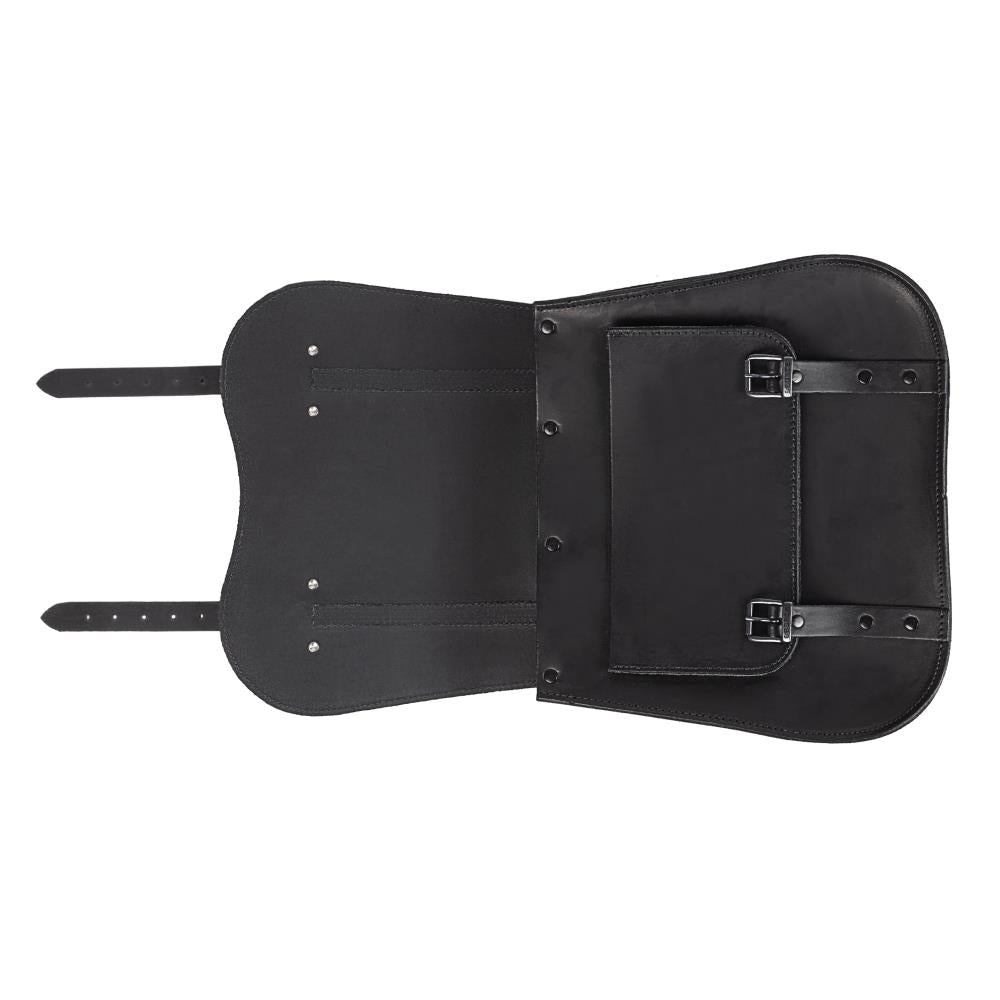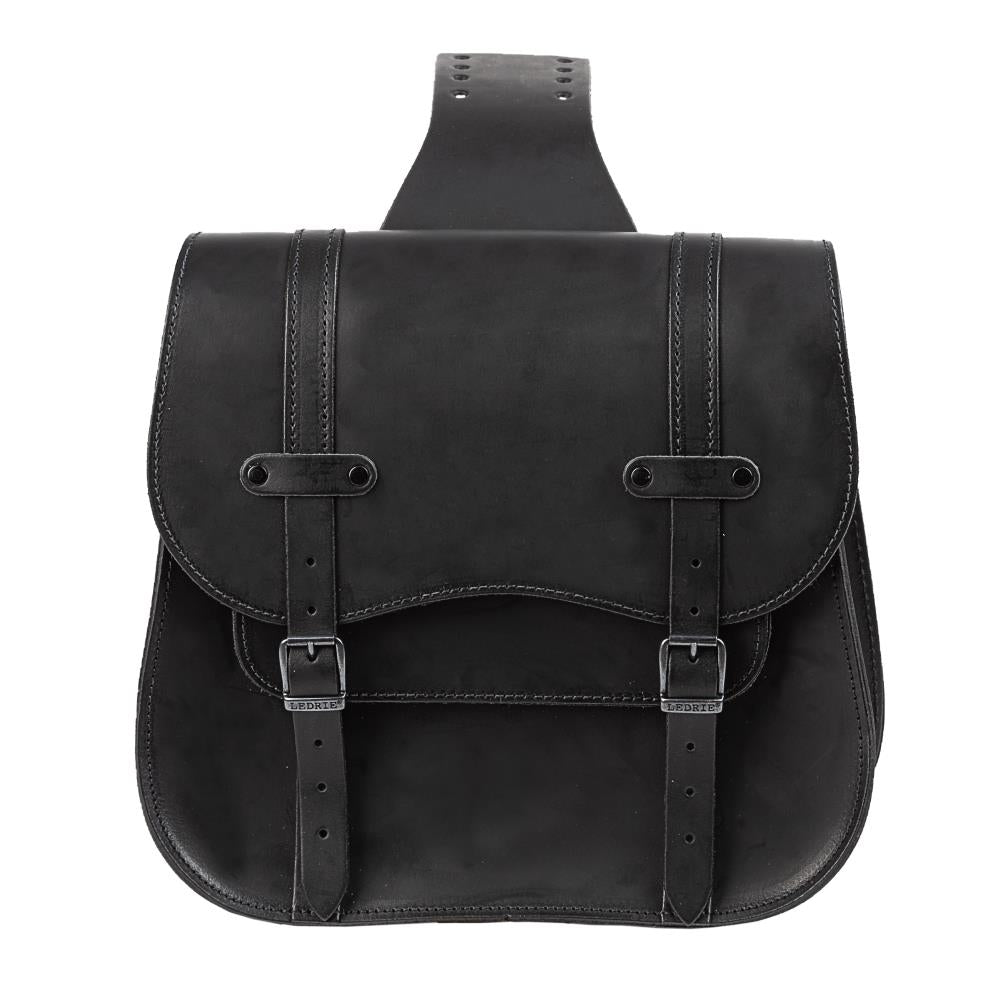 This throw over saddlebag set from Ledrie offers great storage capacity and a old-school style that suits any ccustom motorcycle. Made from premium 2.8 mm thick genuine leather, each bag features a 4 mm thick HDPE back panel sewn in for excellent shape retention and mounting strength. These saddlebags are hand-made to maintain consistent high quality. Universally mountable to most motorcycles.