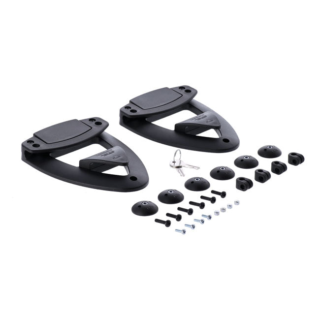 These bags use the Longride Click-On system for mounting and removal in seconds. Each bag comes with a Click-On attachment that mounts to the back of the bag, It clicks into the support brackets on the the motorcycle (sold separately here), which are required for installation. Brackets are available as direct-fit for many motorcycles or in universal versions. These bags can also be used without the Click-On system if preferred.