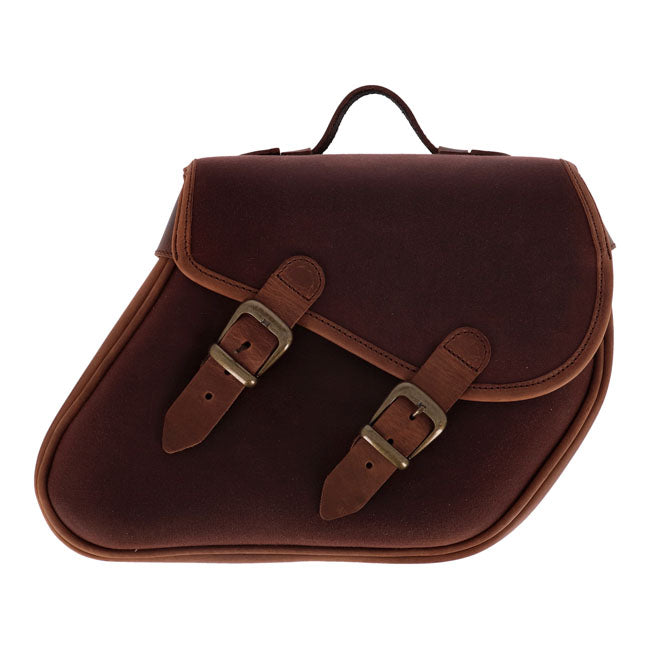 The Heritage Click-On saddlebags bring timeless vintage style with modern practicality to your motorcycle. Handcrafted with weather-resistant waxed cotton and thick vegetable-tanned full-grain cowhide leather.