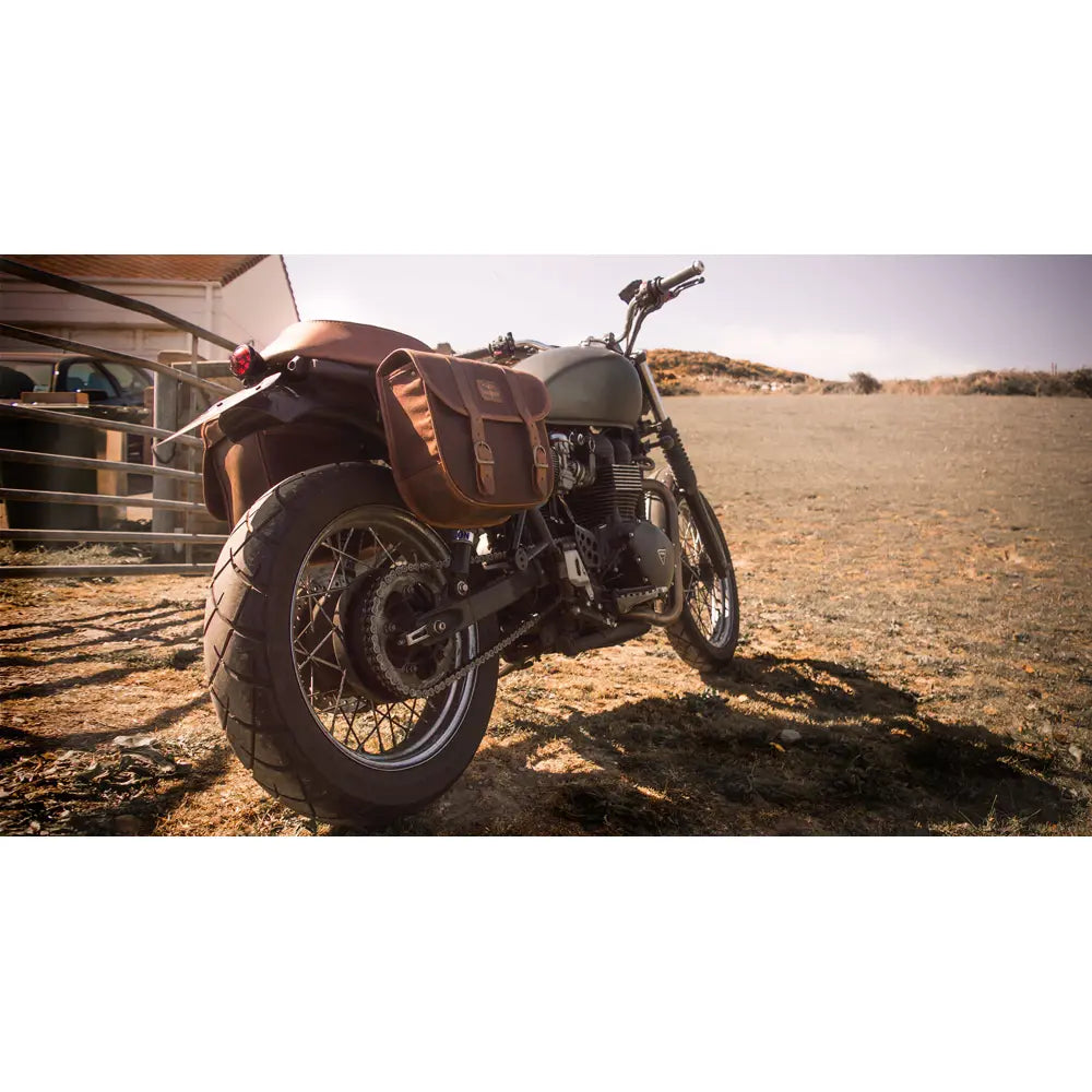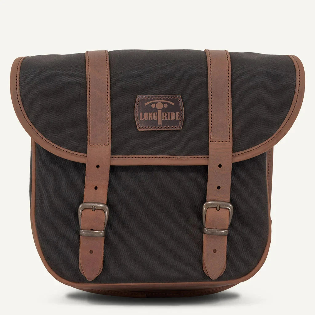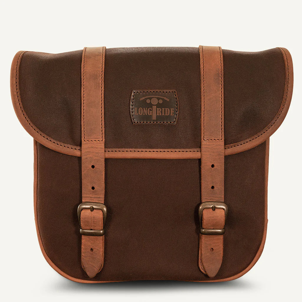 These Longride Pannier vintage saddlebags bring classic style and practicality to your motorcycle. Handcrafted with weather-resistant waxed cotton and thick vegetable-tanned full-grain cowhide leather. The adjustable throw-over design makes them compatible with most motorcycles and allows you to attach, or take your saddlebags off the motorcycle in seconds.