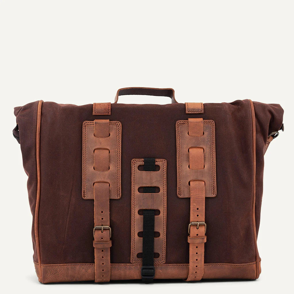 The Super Patriot Roll Top universal vintage saddlebag was inspired by the army saddlebags used during World War II, the bag is cut from the highest quality 22oz French canvas, and Belgian vegetable-tanned leather.