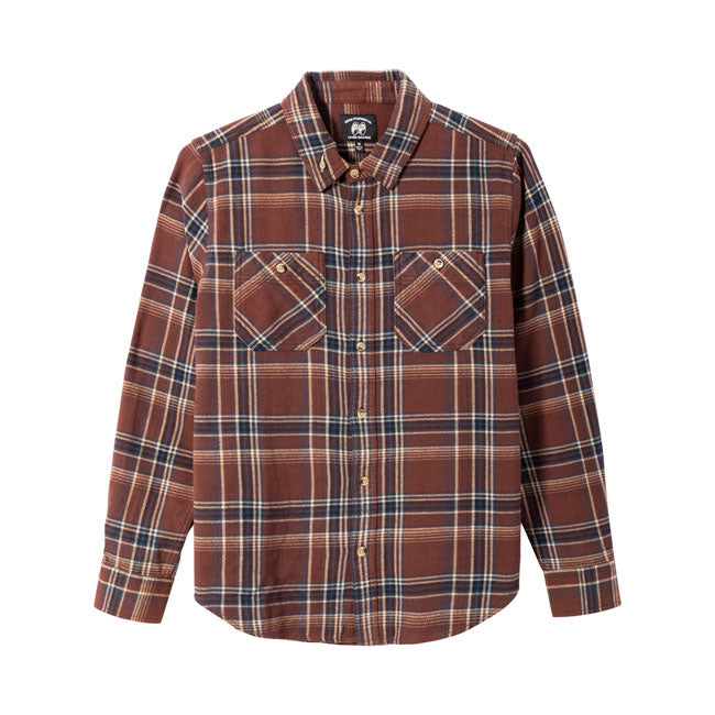 A flannel with attitude. The Charlie Shirt by Loser Machine and Mooneyes mixes soft cotton with thoughtful details like tortoise buttons and a Good Luck pin. Clean look, subtle branding.