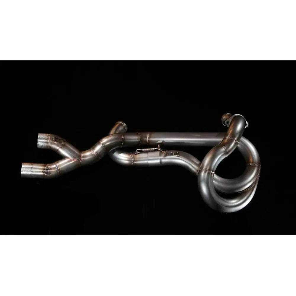 Note: Mufflers not included. This exhaust has a 1.75" (44.5mm) muffler connection diameter.