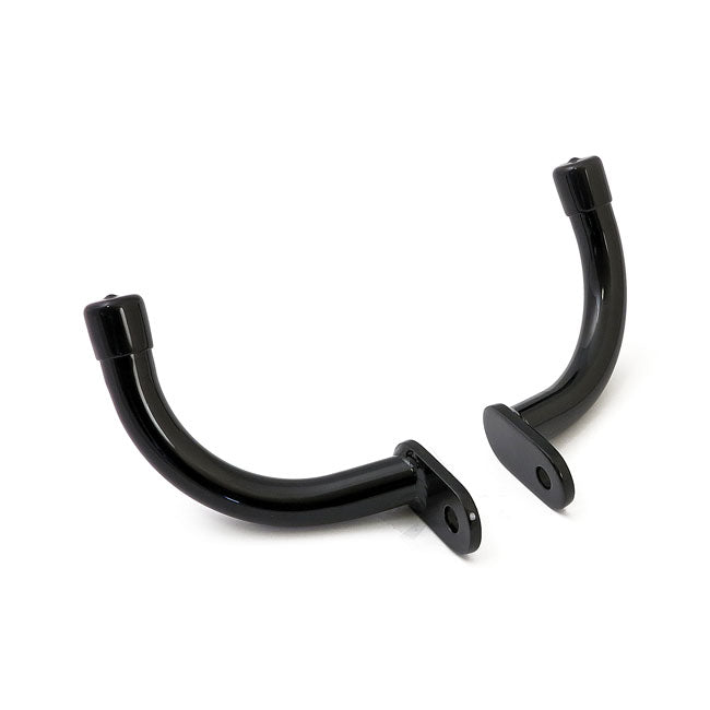 Installed to support the lower saddlebag supports when stock rear saddlebag guards or crash bars are removed. Provides a clean, custom look as found on Street Glide and Road Glide models.