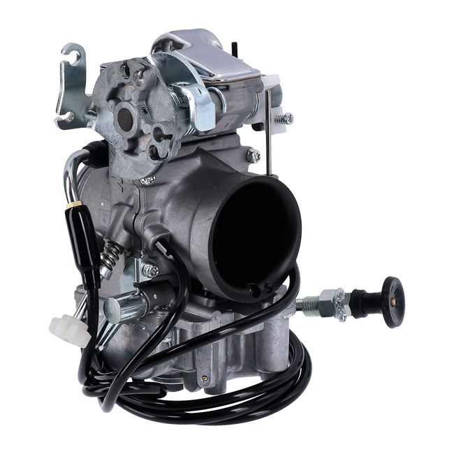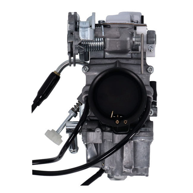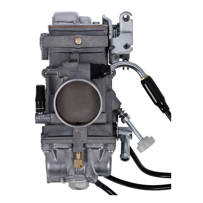 Flat slide carburetor from Mikuni that offers significant performance improvements over older round slide carbs.