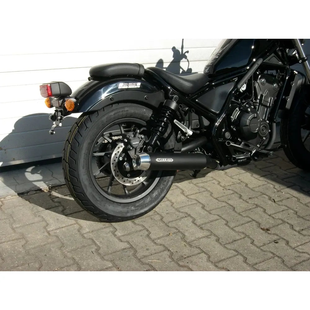 The Miller Custom slip-on muffler is the perfect upgrade for your Honda Rebel CMX 500. With Euro 4/5 approval and easy bolt-on installation, you’ll get a much deeper sound while remaining fully road legal.