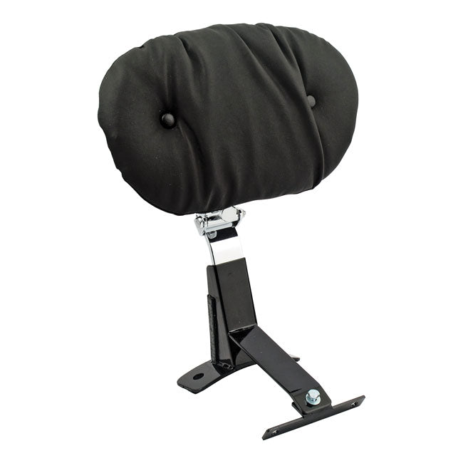 With this kit, you can install a driver backrest on a one-piece 2-up Touring seat, whether you're running a Mustang or a stock seat. The frame-mounted bracket provides a stable and secure installation, and once in place, the backrest can be adjusted to fit your back. It installs and removes without tools and can be folded flat when not in use.