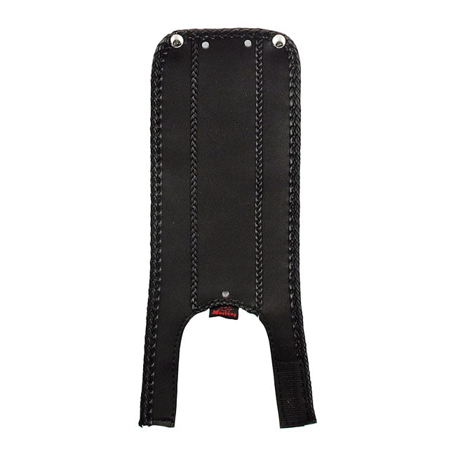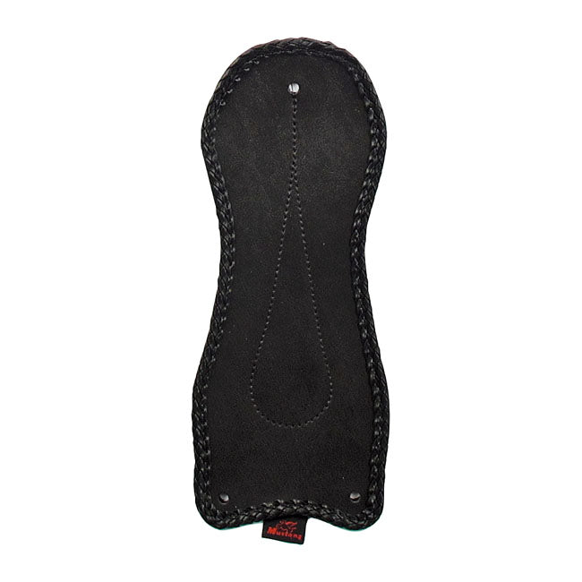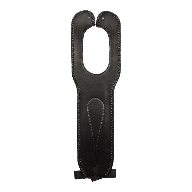 This tank bib follows the tank closely, so it sits tight without gaps along the edges. The felt backing adds a layer between the bib and your paint, and the braided edges give it a finished look without going over the top.