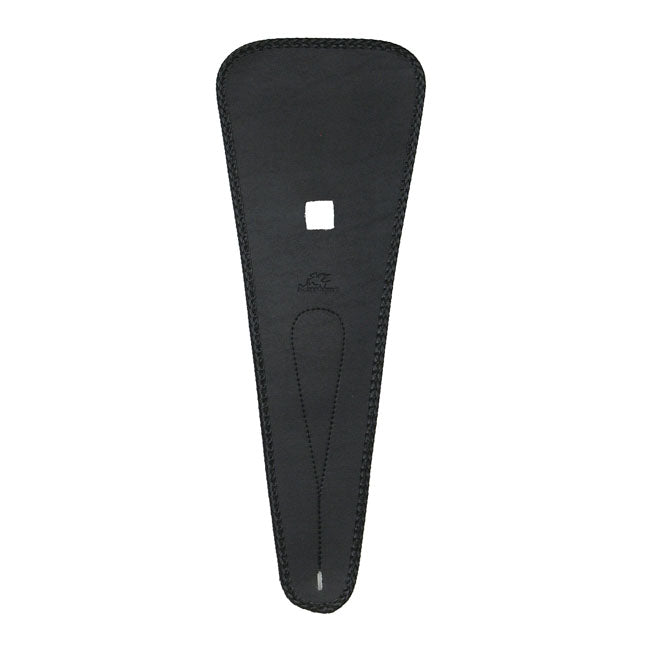 This tank bib follows the tank closely, so it sits tight without gaps along the edges. The felt backing adds a layer between the bib and your paint, and the braided edges give it a finished look without going over the top.