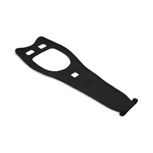 This tank bib follows the tank closely, so it sits tight without gaps along the edges. The felt backing adds a layer between the bib and your paint, and the braided edges give it a finished look without going over the top.