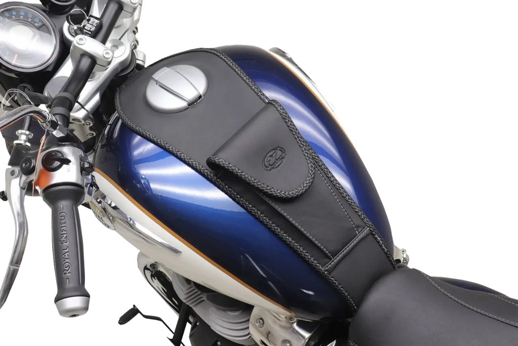This tank bib adds a bit of function without messing up the lines of the bike. It follows the tank closely and uses the stock mounts, so installation is straightforward. The built-in pouch gives you a spot for small essentials, and the felt backing helps protect the paint underneath.