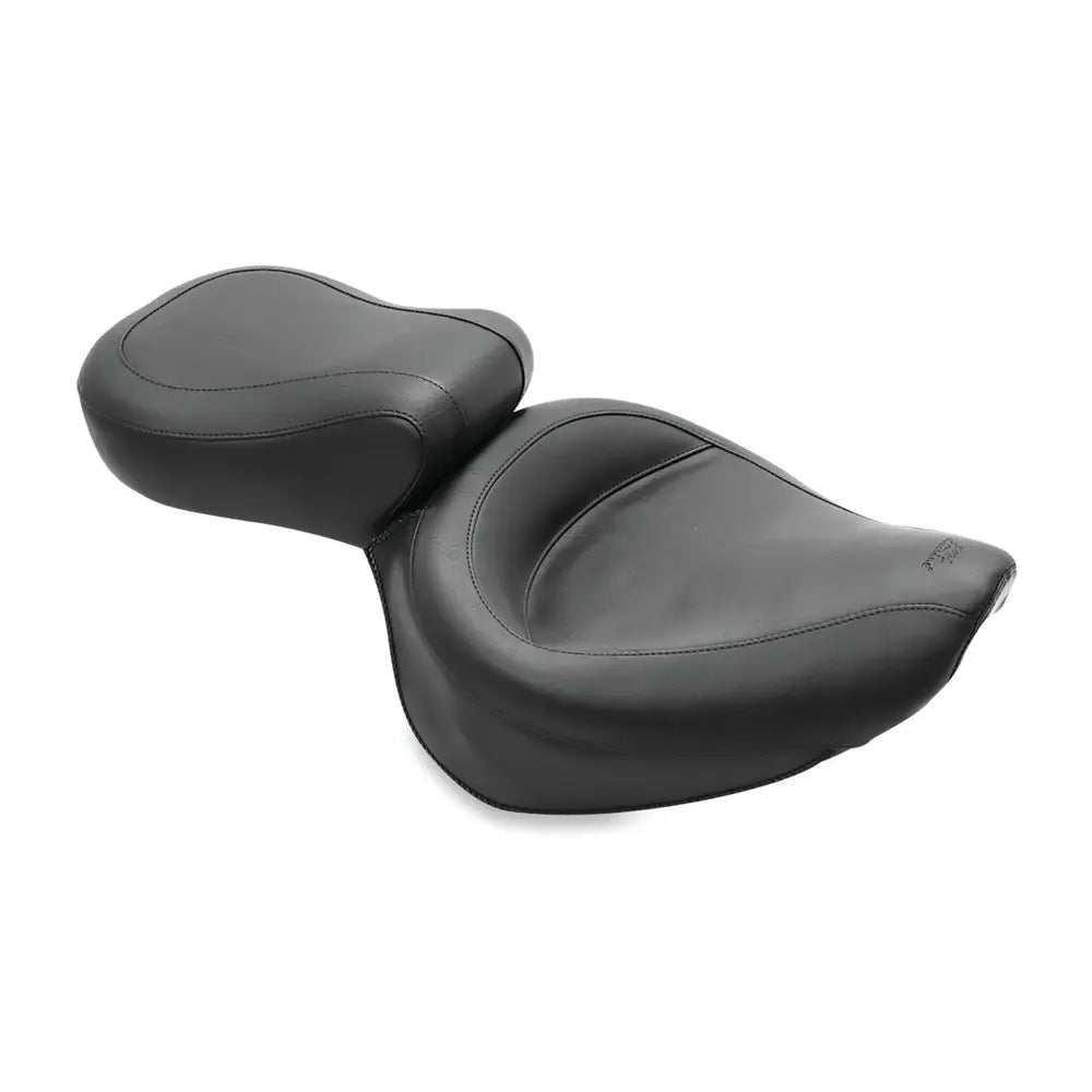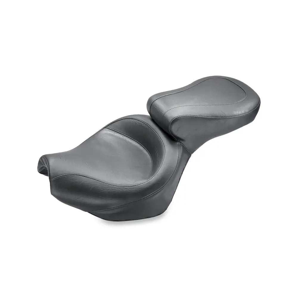 The Standard Touring 2-Up from Mustang gives the rider a significant comfort upgrade without changing the bike’s natural riding feel. The deeply contoured rider section keeps you stable and comfortable, while the passenger seat extends forward and works like a built-in backrest. Both seating areas are designed for long-distance comfort and are built on a sturdy fiberglass base for a secure and durable fit.