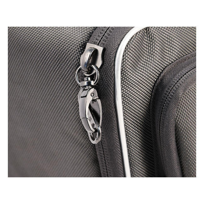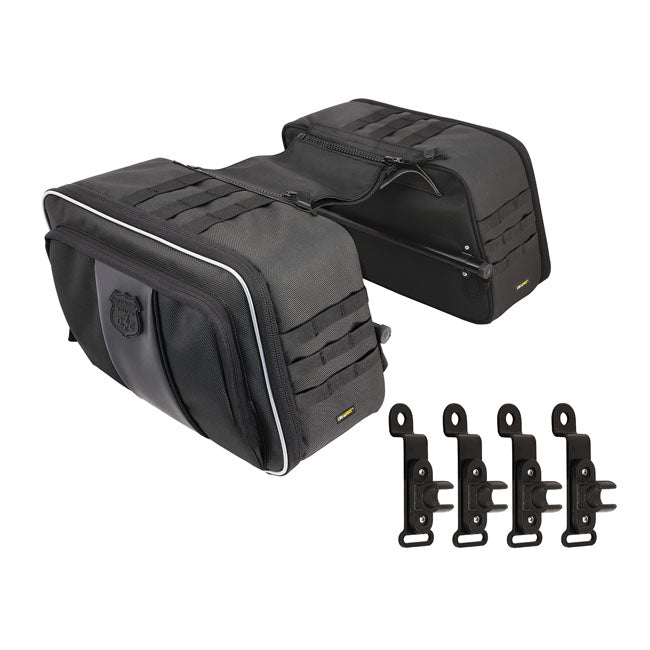 The Nelson Rigg Road Trip saddlebags are designed for cruisers, offering a secure fit, durable construction, and practical storage. Made from industry leading UltraMax fabric with maximum UV protection. Throw over design with included custom fender mounting brackets.