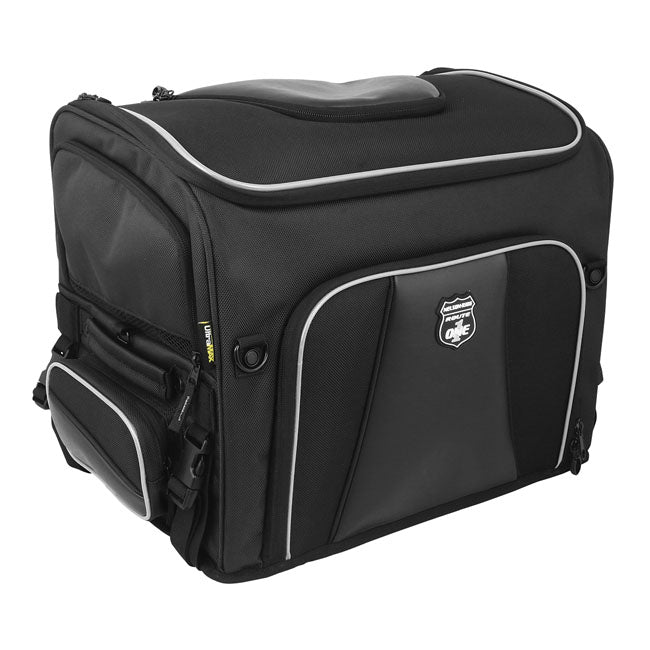 - Mounts to tour trunk rack, sissy bar, or seat with quick-release straps