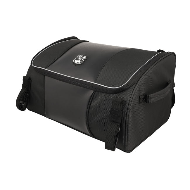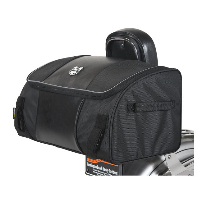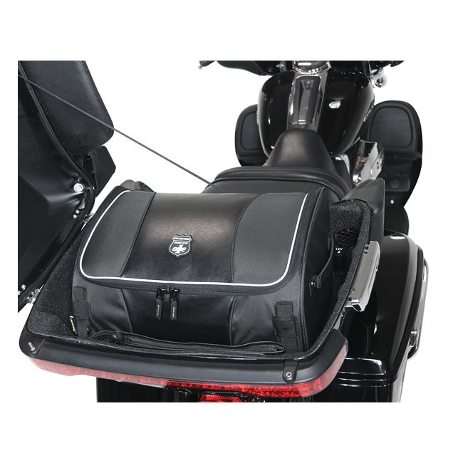 The Route 1 Traveler Lite bag is a versatile mid-sized luggage option designed to add 35 liters of secure storage to your motorcycle. Made from rigid UltraMax fabric for maximum UV protection and long-lasting durability, it holds its shape even when empty and mounts easily to trunks, luggage racks, or sissy bars. A waterproof rain cover, quick-release straps, and convenient carry handles make it practical both on and off the bike.