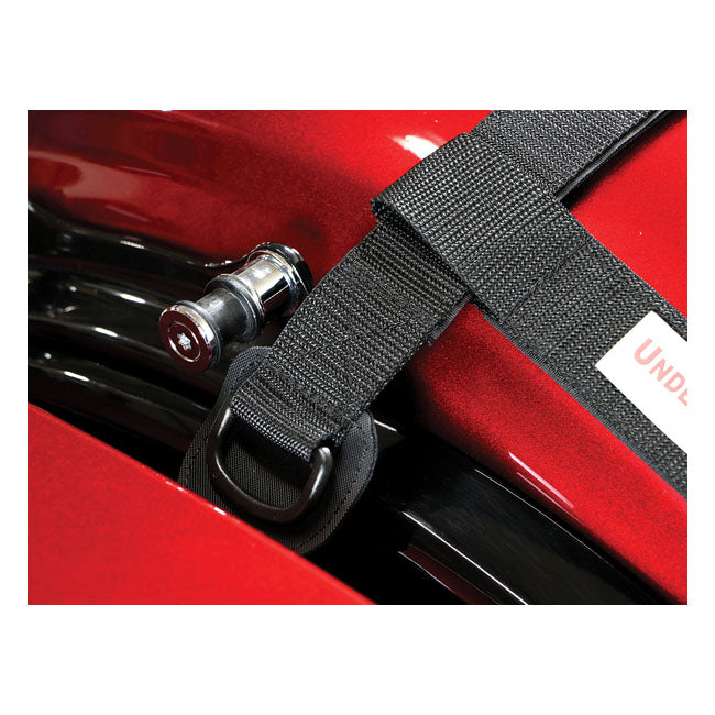 The Route 1 Under Seat Luggage Attachment is the perfect solution for bikes without a backrest or luggage rack. Installed under the passenger seat, it creates four secure tie-down points for fastening luggage straps. With heavy-duty materials and protective backing, it keeps your gear stable while protecting your bike’s finish.