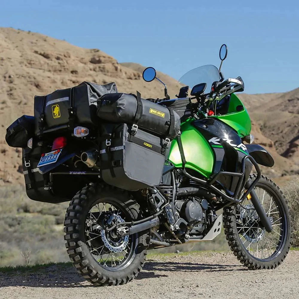 The Sierra Dry Saddlebags are built for adventure, offering 100% waterproof protection and rugged durability. Made from heavy-duty 24oz tarpaulin PVC with heat-welded seams, they keep your gear completely dry in any weather. Aircraft-grade aluminum hardware ensures strength without fragile plastic parts, while removable liners make packing and unpacking simple.