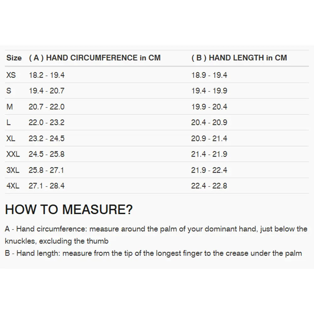 - Stretch fabric at cuff, thumb, fingers, and back of hand