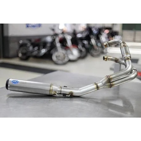 The S&S Qualifier 2-into-1 Exhaust System for Royal Enfield combines race-inspired styling with improved performance. This lightweight, TIG-welded stainless steel system delivers a significant boost in power and torque, along with a deep, aggressive exhaust note that sets your bike apart.