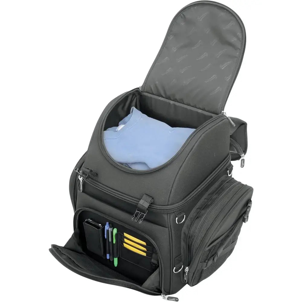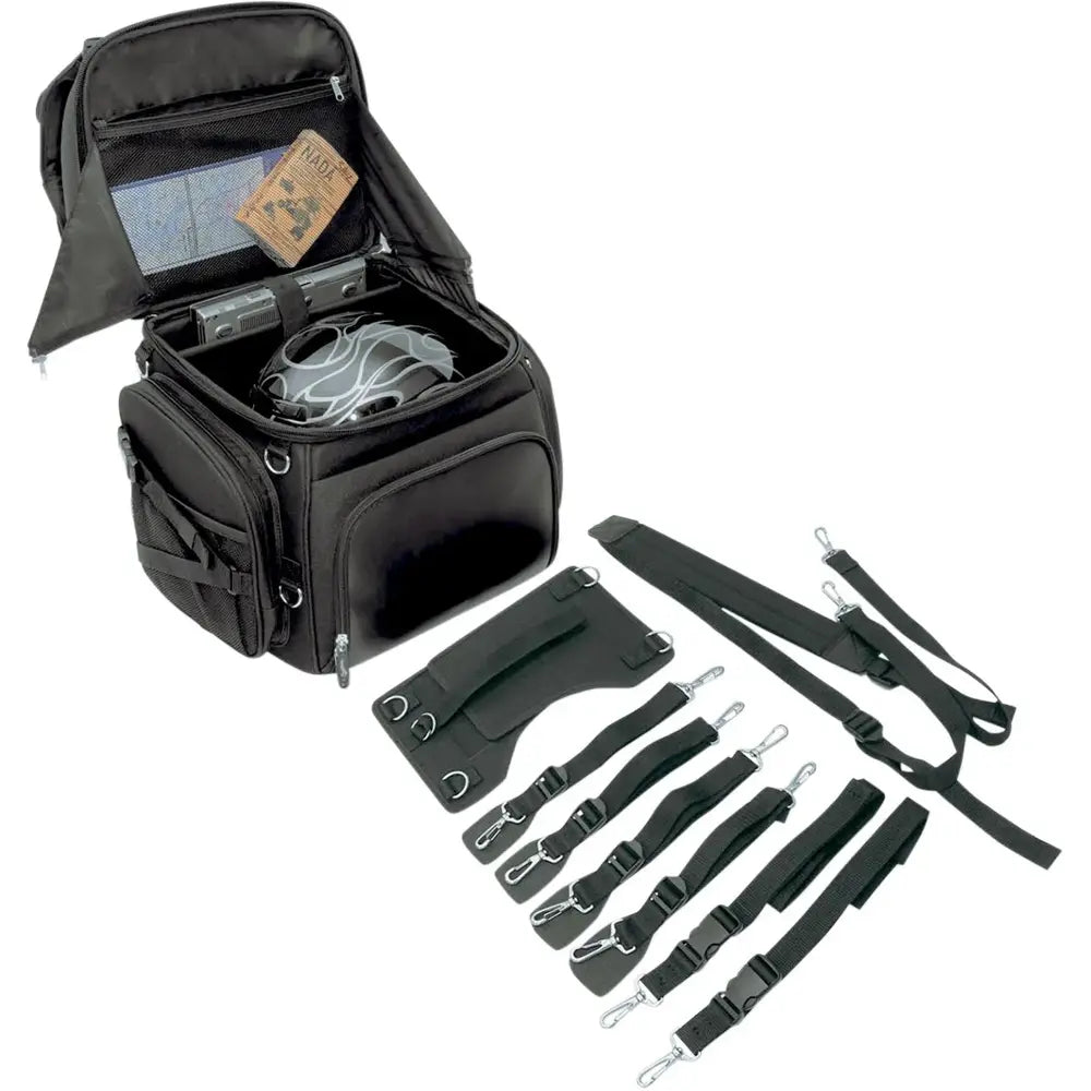 This bag is built to mount to a wide range of setups, whether you’re strapping it to the seat, luggage rack, or sissy bar with the included systems. It keeps its shape thanks to a reinforced structure, and the mix of SaddleTuff™ and leather-like panels makes it tough against the elements. With roomy compartments, expandable pockets, and even a laptop slot, it’s set up to handle both long hauls and everyday rides.