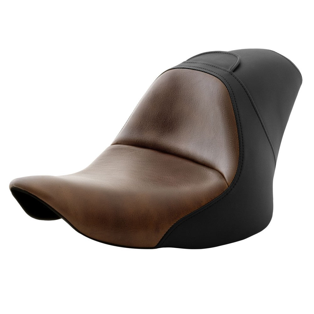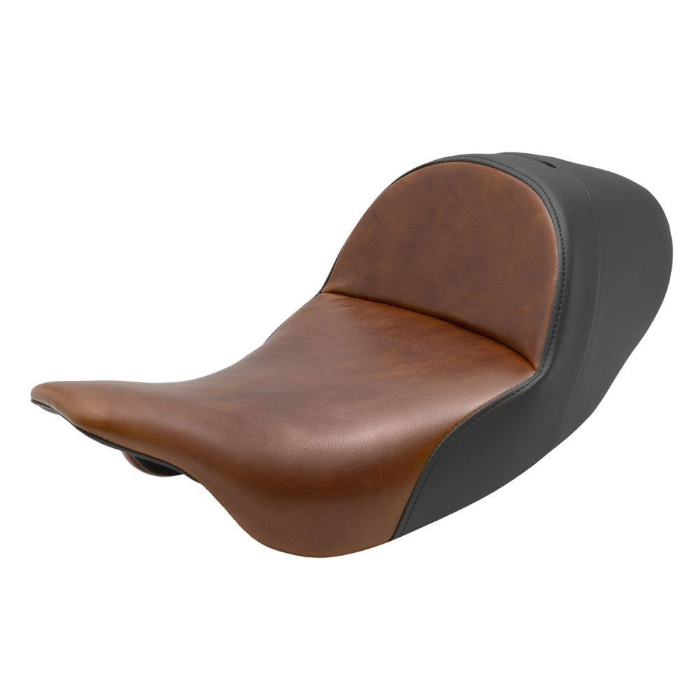 Introducing the latest addition to the Saddlemen Renegade solo seat family, the Lariat seats for Harley-Davidsons. Combining the rugged aesthetic of distressed saddle-brown leather with advanced Saddlemen engineering, this seat positions the rider lower for improved control and riding confidence.