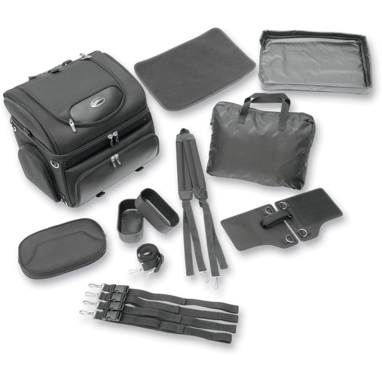 - Quick-disconnect straps and sissy bar sleeve allow fast removal