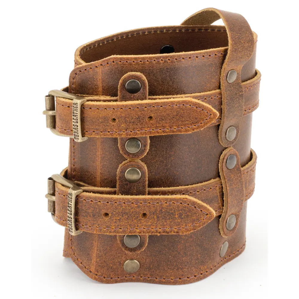 The Texas Leather Fuel Friend gas can holder fits the 1L or 1.5L Fuel Friends for easy attachement to your bike. Made from real leather.
