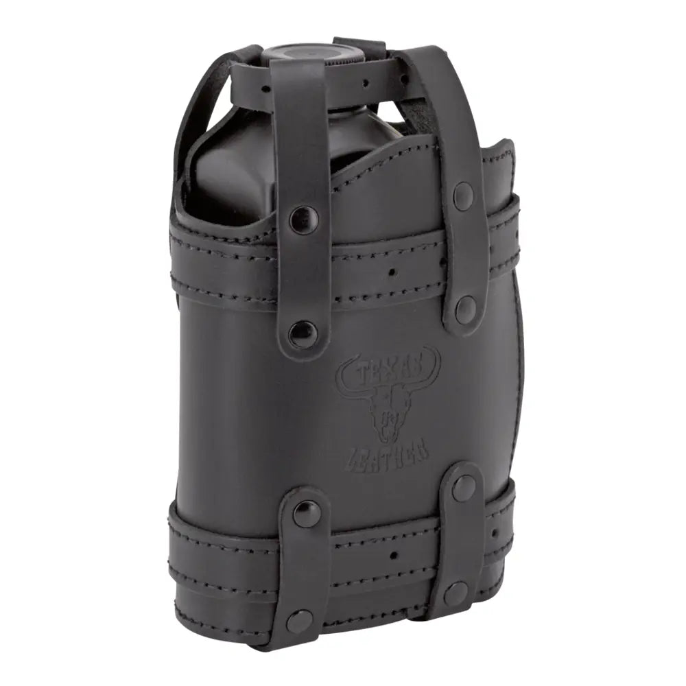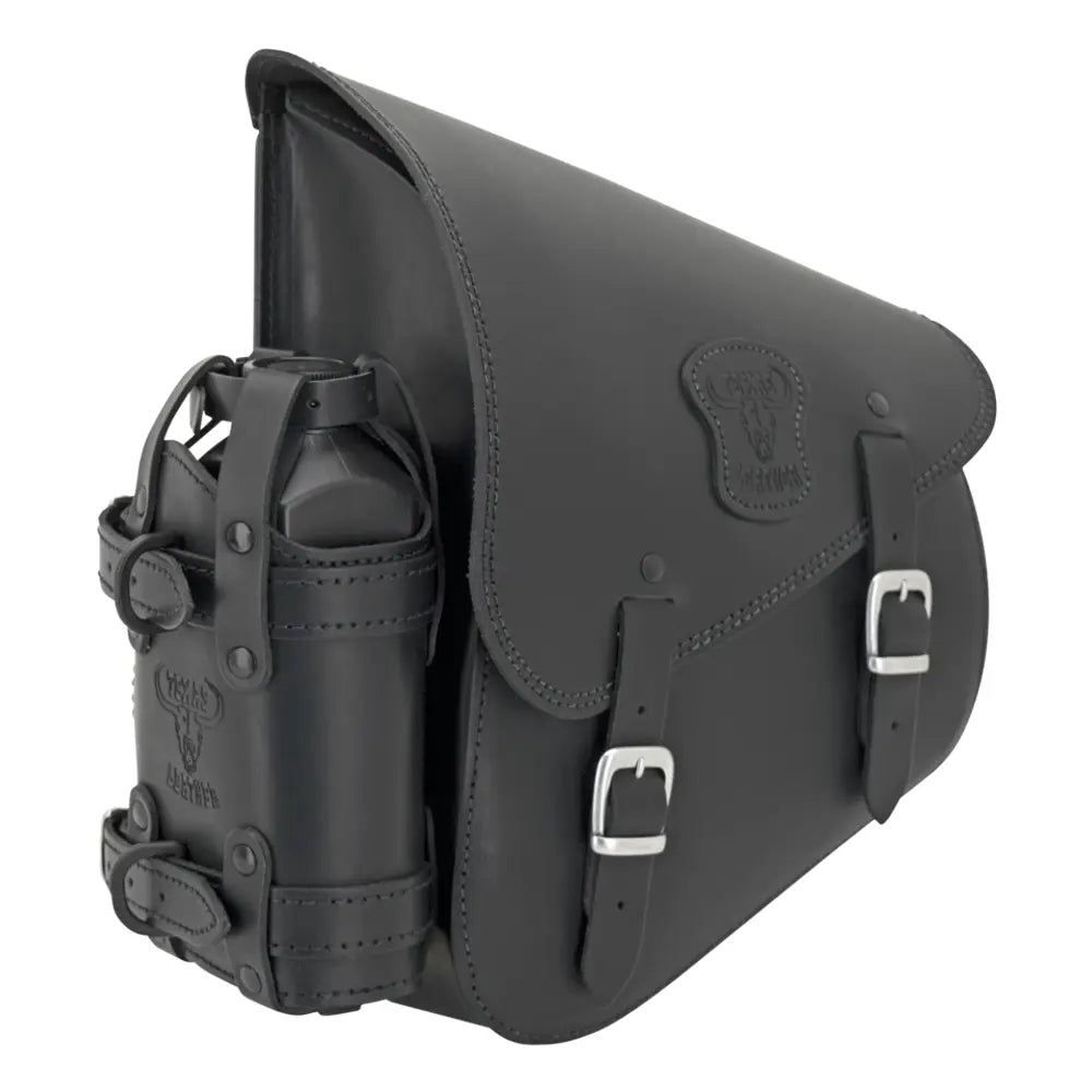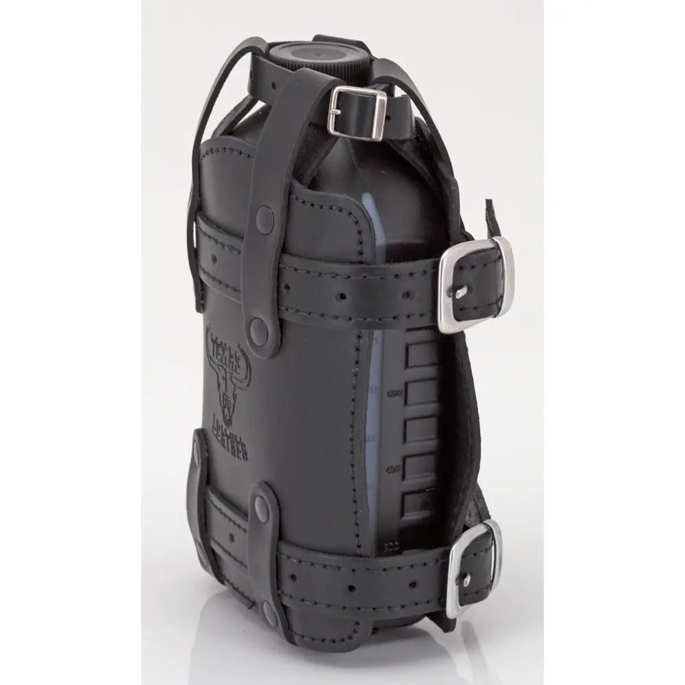 The Texas Leather oil bottle holder fits most rectangular 1L oil bottles for easy attachement to your bike. Made from real leather.